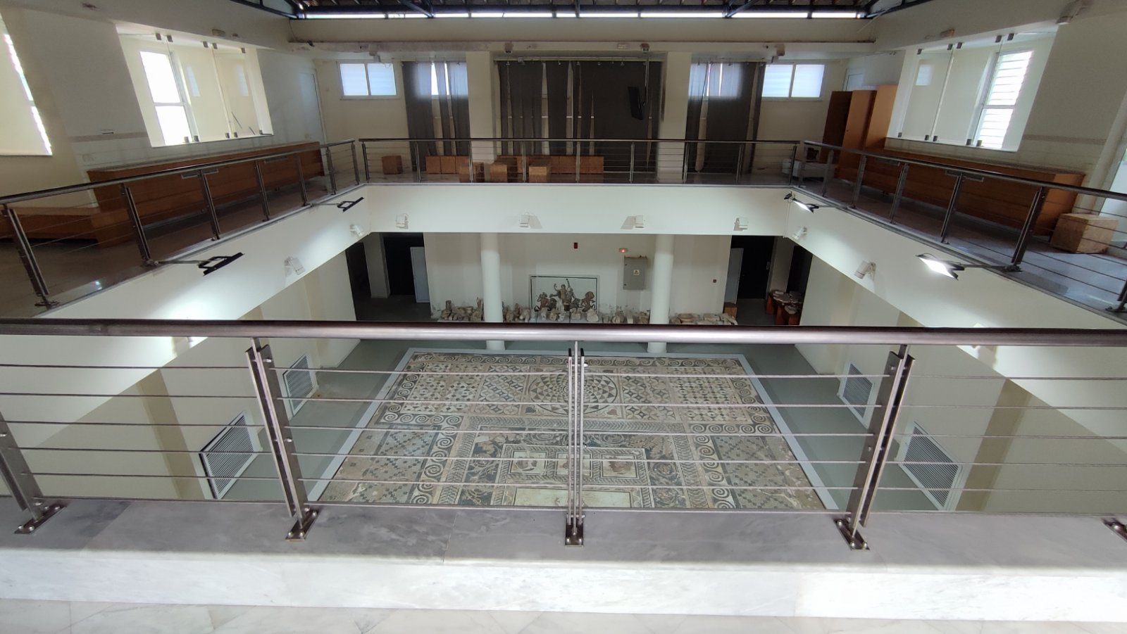 Ταυτόχρονα, οι προθήκες του ισογείου του κτιρίου φιλοξενούν αντιπροσωπευτικές κατηγορίες κινητών ευρημάτων της Πανεπιστημιακής ανασκαφής του Δίου, τα οποία παρουσιάζονται με τις ενδείξεις της πρώτης τους καταγραφής σε χάρτινα καρτελάκια, αμέσως μετά τον εντοπισμό τους κατά την ανασκαφή.
