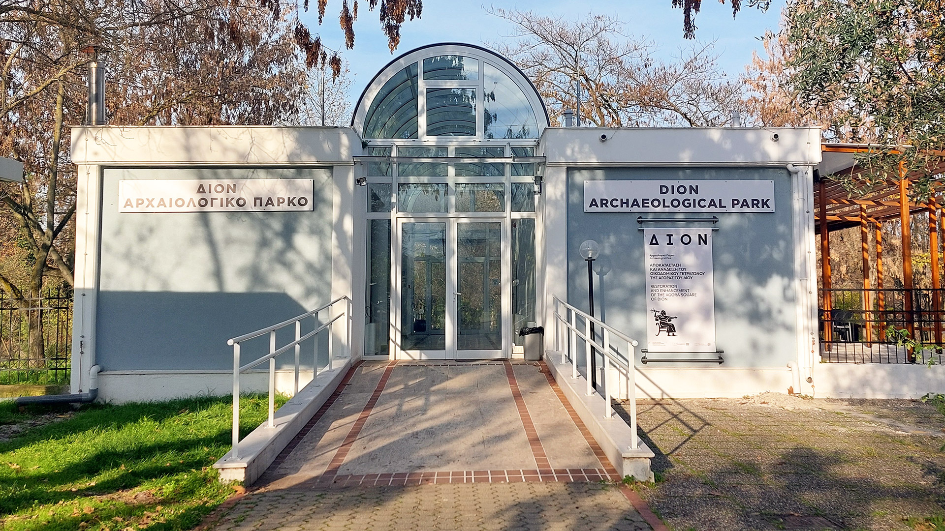 Σήμερα, το αρχαιολογικό πάρκο του Δίου διαθέτει κτήριο υποδοχής επισκεπτών όπου παρέχονται υπηρεσίες πληροφόρησης, πωλητήριο αντιγράφων, αναψυκτήριο και χώρους υγιεινής. Οι πλακοστρωμένοι περίπατοι, οι κατάλληλες για ΑμεΑ διαδρομές κίνησης, οι πινακίδες πληροφόρησης, τα σκιερά καθιστικά, τα αναβρυτήρια νερού και οι πύργοι πανοραμικής θέας συγκροτούν ένα σύστημα καθοδήγησης και άνετης περιήγησης για τον επισκέπτη του αρχαιολογικού πάρκου.