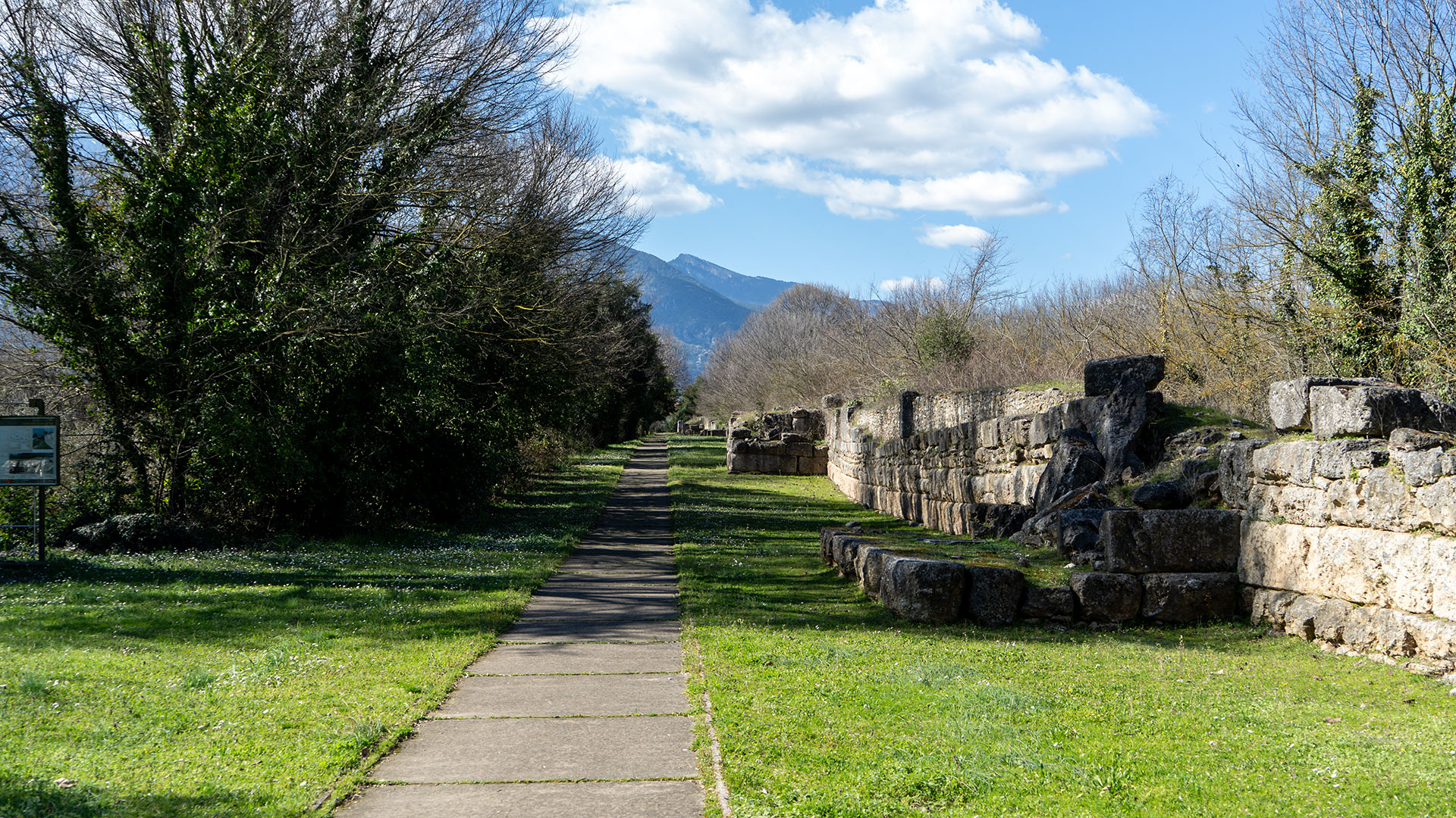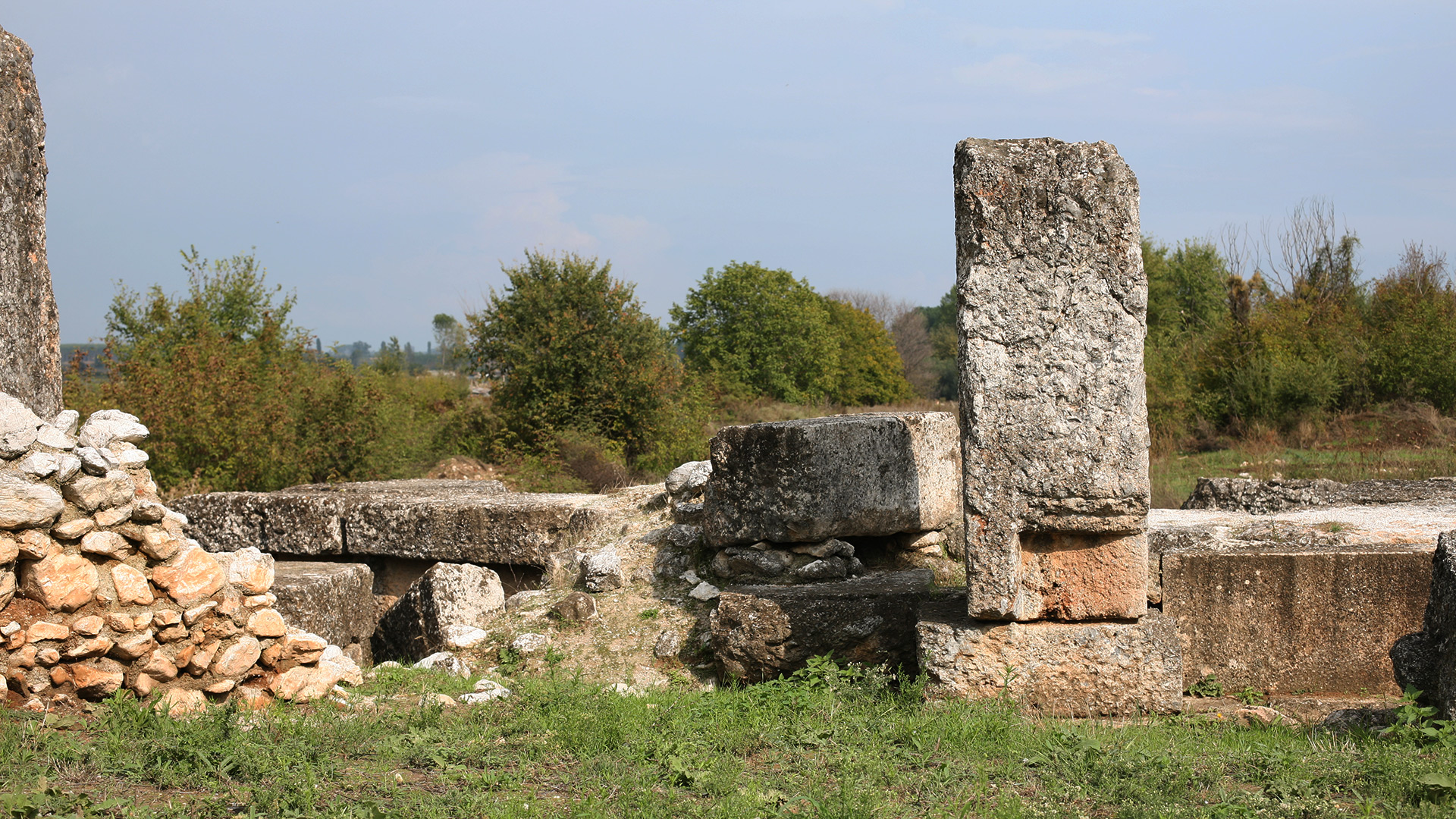 Η πρωιμότερη φάση του οχυρωματικού περιβόλου χρονολογείται από την ανασκαφέα, Καθ. Θεοδοσία Στεφανίδου-Τιβερίου, στην περίοδο της βασιλείας του Κασσάνδρου (305-298 π.Χ.). Οριοθετούσε μία αμυντική περίμετρο με τετράγωνο περίπου σχήμα και μήκος 2.625 μ., η οποία περιέκλειε έκταση 430 στρεμμάτων. Το τείχος διέθετε πύλες χωροθετημένες στα άκρα των βασικών οδικών αρτηριών της πόλης και ανά 33 μέτρα διαμόρφωνε τετράγωνους πύργους με πλευρά 7μ.