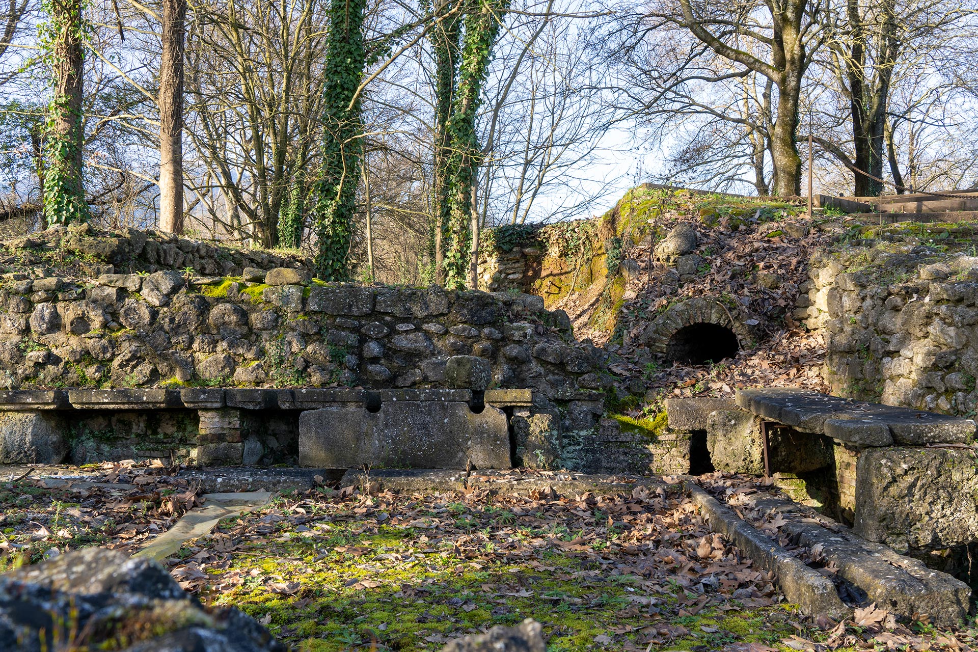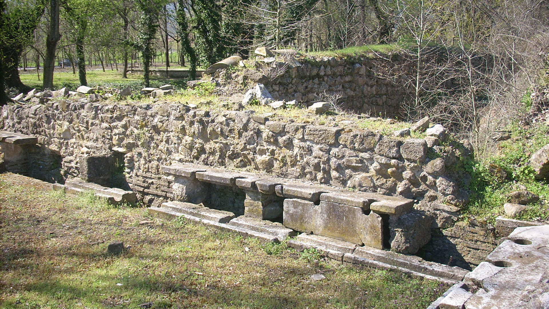 Κατά την είσοδό στην τειχισμένη πόλη από τη νότια πύλη του τείχους, ο επισκέπτης συναντούσε, στα αριστερά του κεντρικού δρόμου, τα δημόσια αποχωρητήρια που κατά τη ρωμαϊκή εποχή ονομάζονταν βεσπασιανές. Η ονομασία αυτή καθιερώθηκε στη ρωμαϊκή επικράτεια ως αντίδραση στον φόρο που επέβαλε ο αυτοκράτορας Βεσπασιανός (69-79 μ.Χ.) στους εμπόρους που συνέλεγαν τα ούρα. Πρόκειται για τον λεγόμενο «Φόρο των ούρων» (Vectigal Urinae).